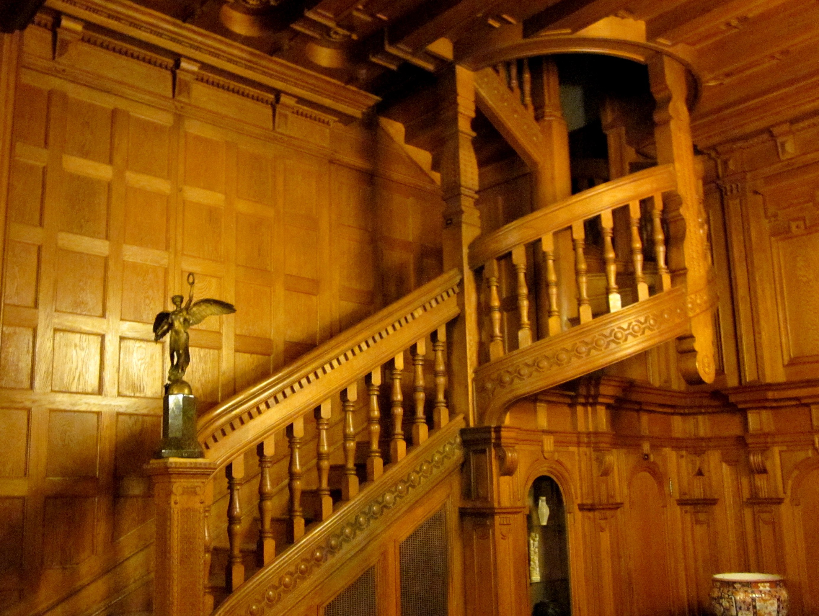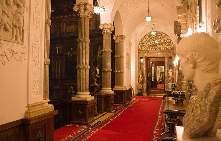 Frumusețea și bogăția lemnăriei sculptate și vitraliile colorate obțin pe drept admirația vizitatorilor. Holul de onorare, o sala de receptie realizată în anul 1911 de Karel Liman dintr-o fostă curte interioară este bogat ornamentată în lemn, și are acoperiș din vitralii. Sălile de arme au fost amenajate între anii 1903-1906, iar sala de consilii, bogată în intarsii în 1914.